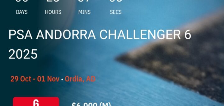 Erstmals nehme ich an einem PSA-Weltranglistenturnier in Andorra teil. Bei dem mit 6.000 USD dotierten Andorra Challenger bin ich an Nummer 4 gesetzt und treffe in der ersten Runde auf Valentin Rapp (GER, WRL...